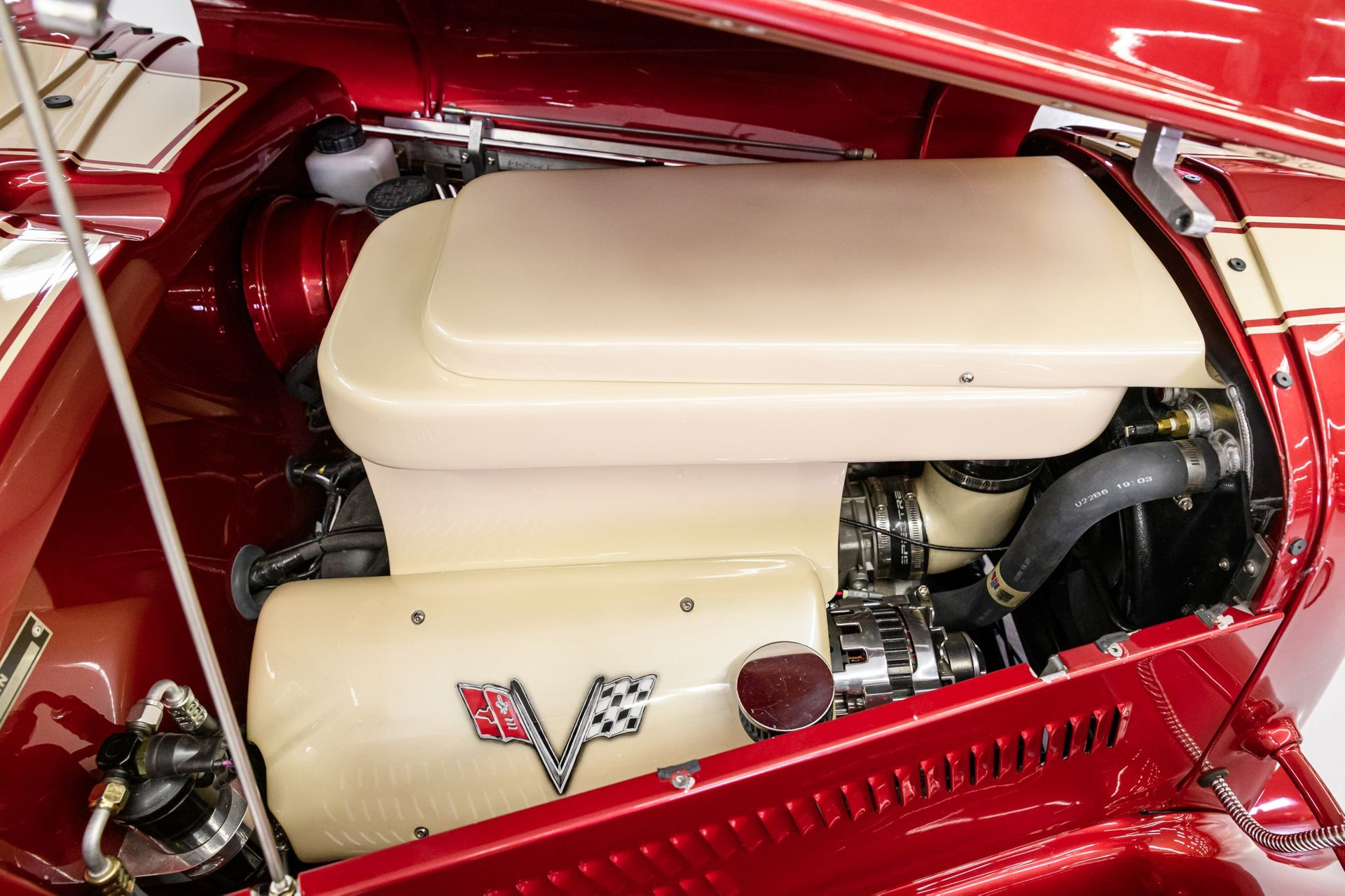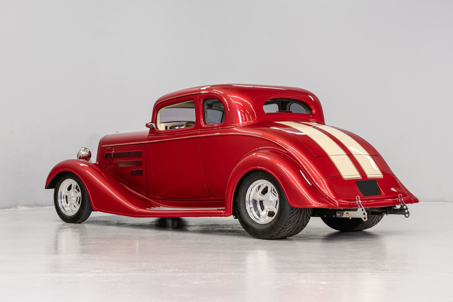 Look at the photos of this 1933 Chevy Street Rod - the attention to detail is unbelievable. From the beautiful paint, to the stunning interior, to the powerful drivetrain, this Chevy is an example of how to design and build a top-shelf street rod. This coupe was finished in 2016, but looks like it was built yesterday. The 2.5” chopped fiberglass '33 body w/'34 fenders received a virtually flawless coat of Ferrari Rosso Red with trademark Chevy strips. A Dan Fink Metalworks 3-piece double-opening hinge kit operates the steel Rootlieb hood w/side louvers. The menacing stance is accented by Billet Specialties 'Vintique' alloys that mount Mickey Thompson Sportsman radials front and rear (29/15R15). The stunning interior features Nissan bucket seats upholstered in beige leather. Other highlights include full console, power tinted windows, keyless entry and a Pioneer AM/FM/CD/DVD sound system with MP3 and GPS Navigation. (The Chevy is also fitted for A/C, but the owner states that there is a small freon leak in the system so it is currently inop.) A custom dash sports a full set of Autometer gauges and a 'spoke' wheel rests on a tilt column. The rear storage compartment is finished as carefully as the interior and all electrics are managed by a 23-circuit American Autowire package. Under the hood is a GM LS1 346ci small-block that sounds perfect through stainless headers and exhaust. It is fitted with LS-6 heads, Isky Performance cam, Speartech engine management system, aluminum radiator and custom fiberglass air intake/engine cover. Our LS1 dynoed at 451bhp and is backed by a Tremec T56 Magnum 6-speed manual gearbox with hydraulic clutch. Torque is transferred via an aluminum driveshaft to a narrowed 9” Ford differential with Detroit/Eaton Truetrac positraction and 3.70:1 gears. The spotless custom chassis is equipped with a Mustang II front end, rack and pinion power steering and front sway bar. The rear suspension is parallel 4-link w/coil over shocks, panhard bar and sway bar. Brakes are power assisted 4-wheel disc and the 17 gallon fuel tank is stainless steel. Nerf bars and a hitch receiver have been added arrears. Look at the photos again. Take the time to come to the Autobarn and see this Chevy - you will not be disappointed.