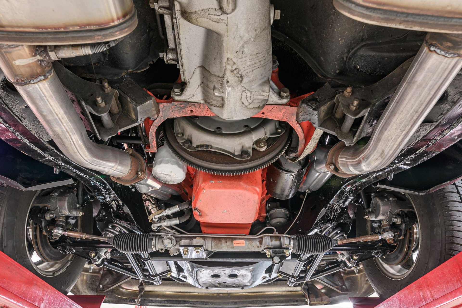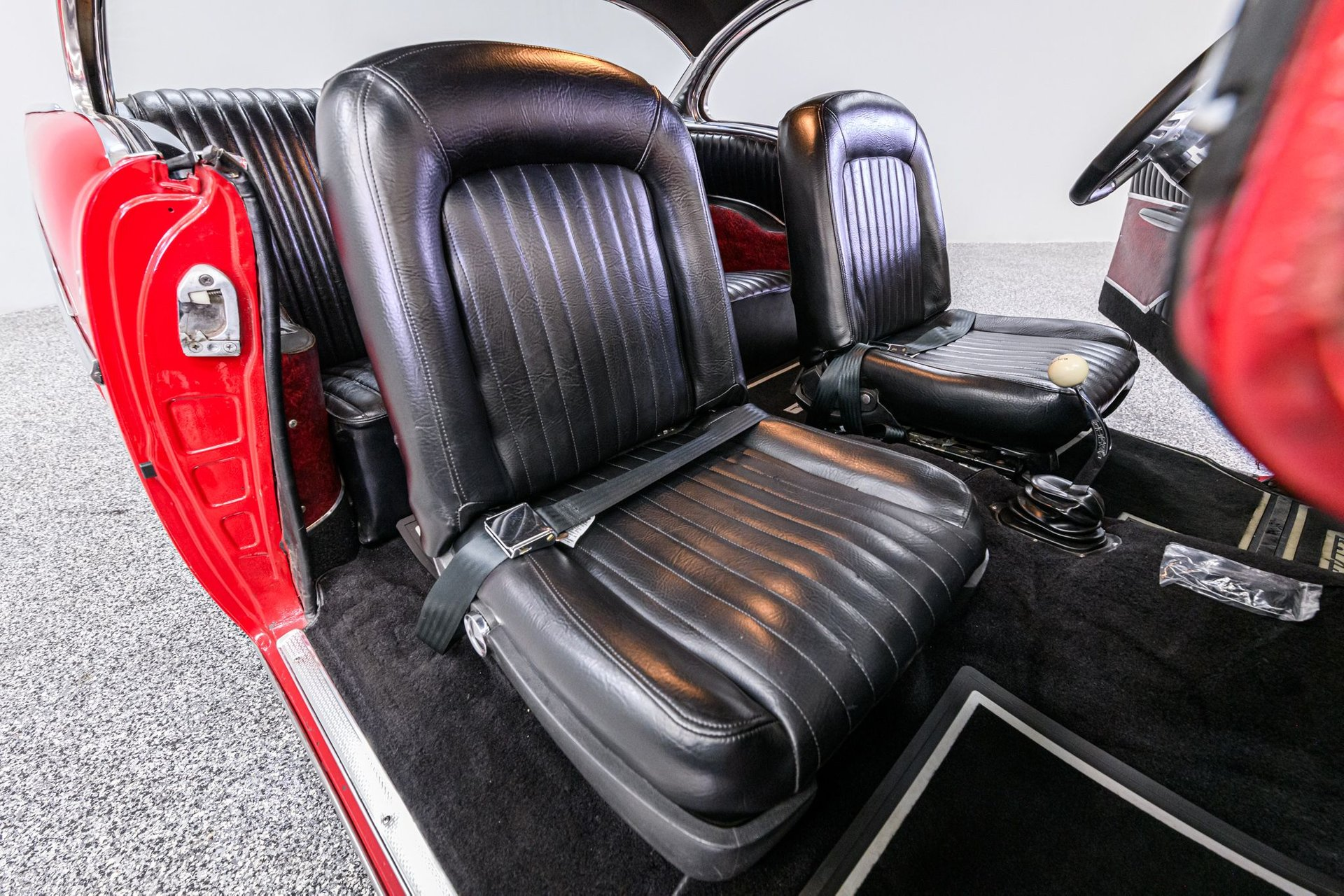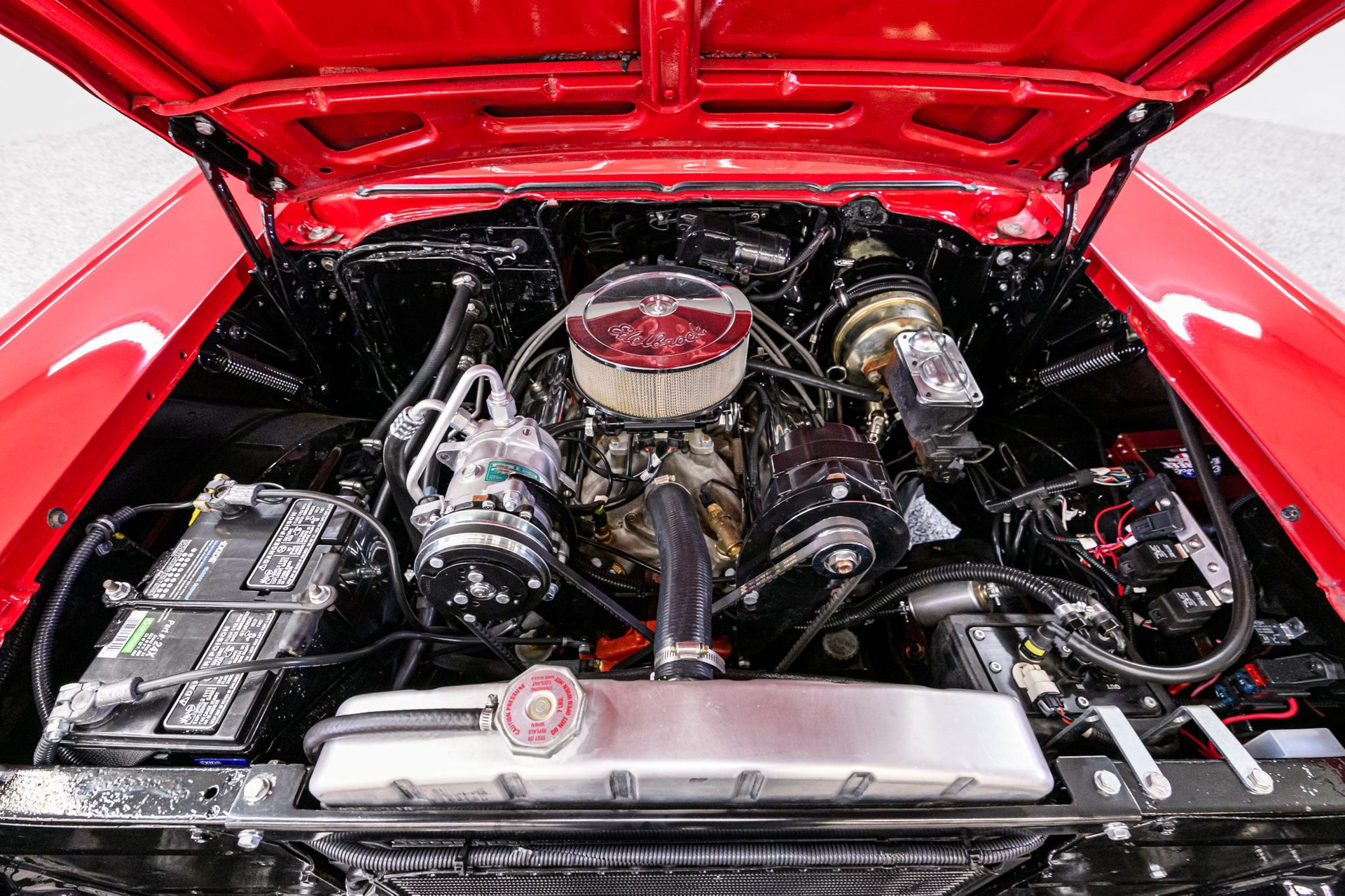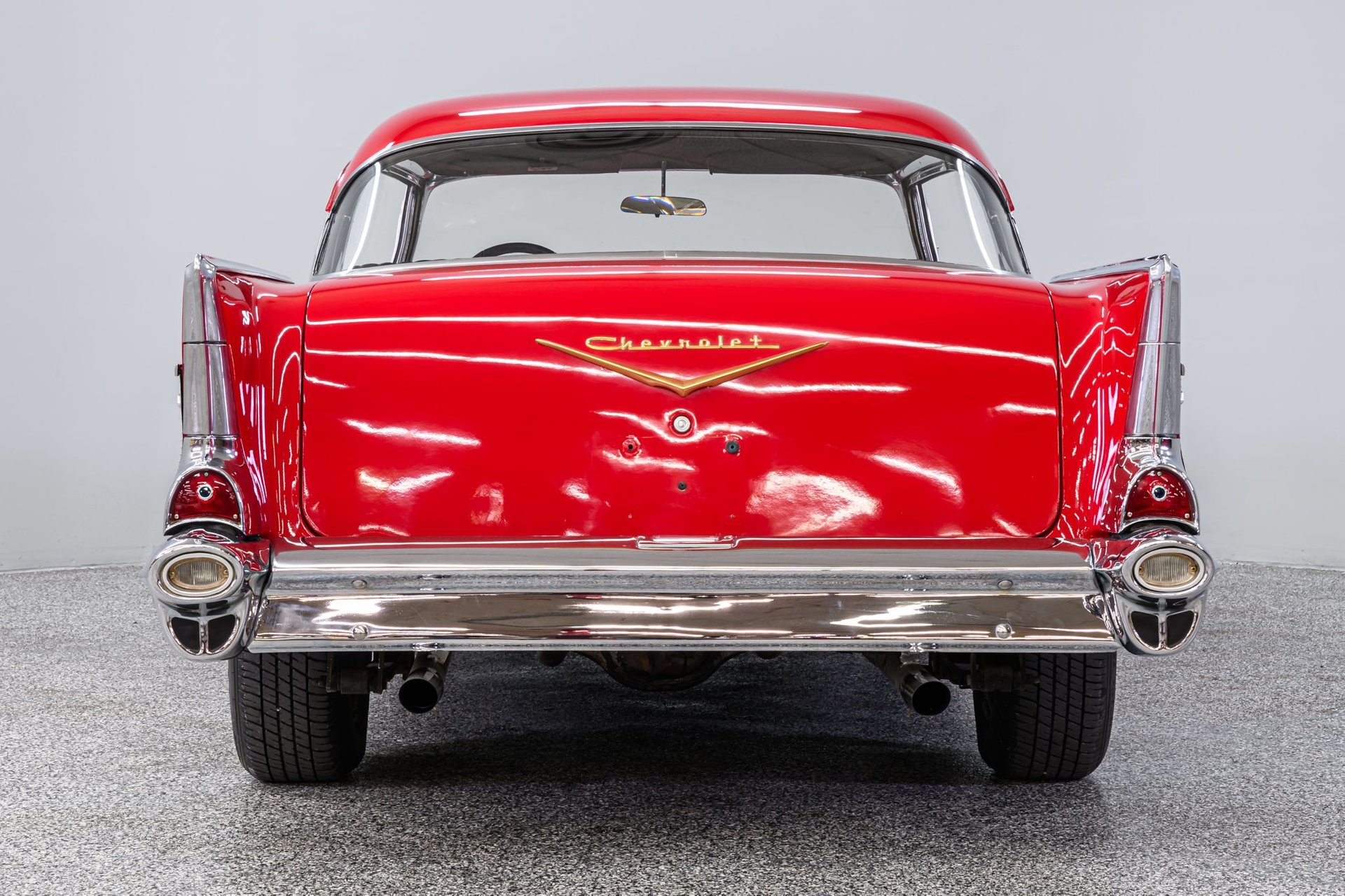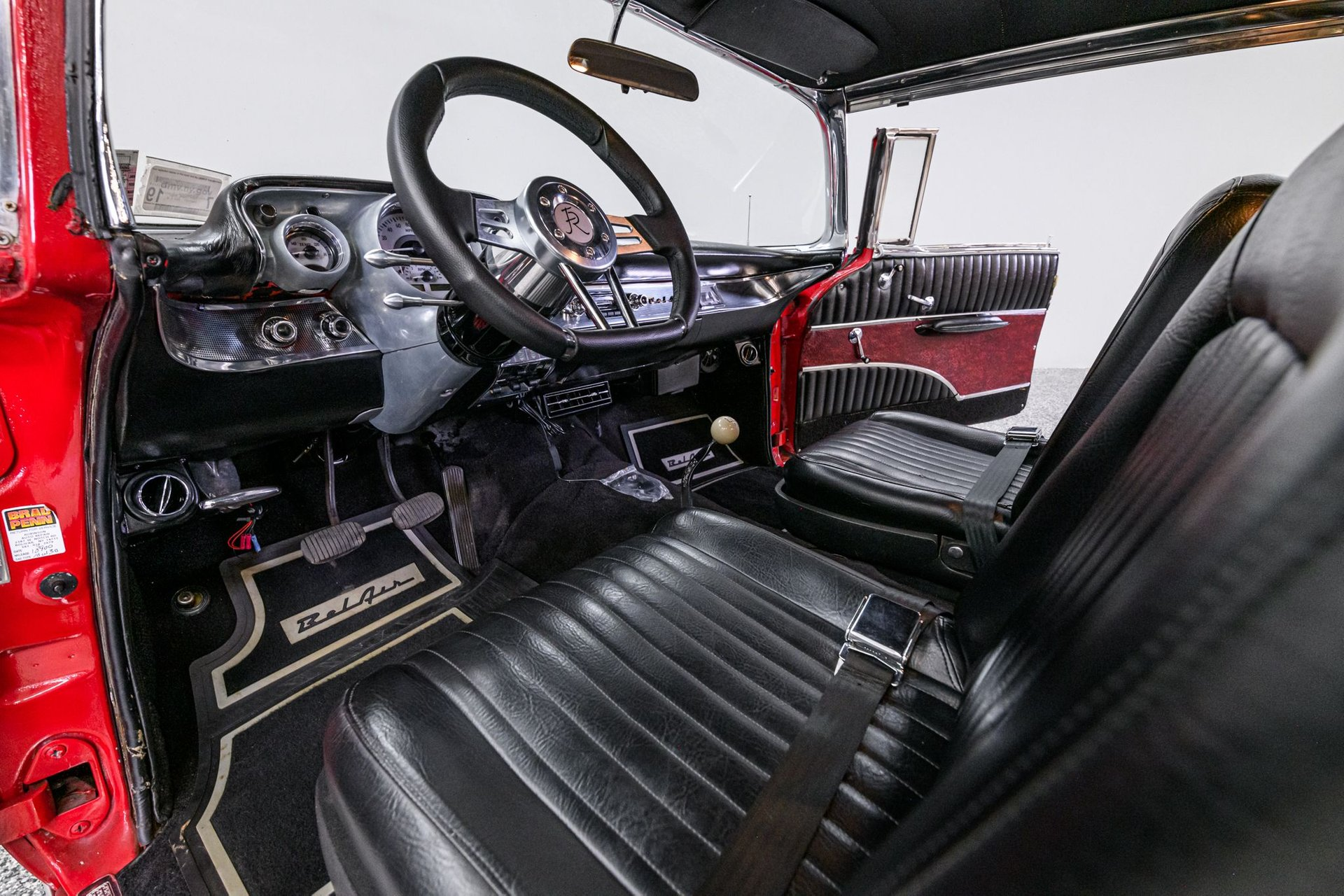 There is a book titled 'All Corvettes are Red'. Maybe the same standard applies to the '57 BelAir, or should. It is an accepted fact that the lines of the classic '57 BelAir are virtually perfect and the artist of this Chevrolet knew exactly how to paint the canvas in order to create a beautiful restoration. The stunning Red finish is exemplary, the chrome flawless and the interior stunning. This BelAir sits just right on a set of period-correct Cragar-style wheels and Remington radials. Inside, the black vinyl rolled/pleated interior is impressive. A front bucket seat configuration looks like the factory design and upholstery work is near faultless. The original steering wheel has been replaced with a leather-wrapped wheel and a full set of custom analogue gauges are mounted in the classic factory dash. Enjoy the ride with cold Sanden A/C, tinted windows, tilt wheel and AM/FM stereo. Under the hood is a built 327ci small-block fitted with an Edelbrock 'E-Street' EFI fuel injection system, street cam, tube headers and aluminum radiator w/electric fans. It is backed by a 4-speed Muncie w/Hurst Comp+ shifter and positraction differential with 3.90:1 gearing. The chassis incorporates power rack/pinion steering, power disc/drum brakes, dual master cylinder and a custom exhaust. This is an extraordinary '57 BelAir - any one of us would be proud to be the next owner of this machine.
