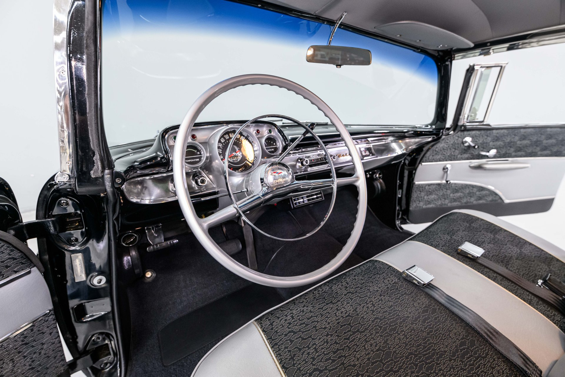 The 1957 Bel Air is a classic tri-five Chevrolet and this fully restored (2000) 2-door hardtop is a perfect example of this icon - strikingly original with strategic mechanical upgrades. The current owner has provided loving care to this Chevy for over 10 years. The Tuxedo Black/White exterior was professionally reshot in 2000 and remains in excellent condition. The body is absolutely straight and all trim looks virtually new. Chevrolet rallye wheels mount BFGoodrich Radial T/A tires. 'Fuelie' logos, dual rear antennae, front bumper guards and gold accent trim complete the stunning exterior package. The only thing that rivals the exterior is the completely restored, back-to-original cloth/vinyl interior. Every minor detail has been addressed. Seat belts have been added and an AM/FM/CD changer sound system provides your music. The Bel Air is also fitted with air conditioning that works fine. Under the classic hood sits a GM L-98 GM 5.7L that was donated by a Pontiac Firebird. It was rebuilt to stock specs and is fitted with factory fuel injection . An electric fuel pump in the tank furnishes fuel and cooling is managed by a center-inlet GM radiator and electric fan. Exhaust is routed through tube headers to a custom dual exhaust. Behind the L-98, sits a 4-speed Turbo-Hydramatic with column shifter - this is a well-designed drivetrain for the street. The chassis is fitted with Saginaw 605 power steering box, power disc/drum brakes w/dual master and front/rear sway bars. This beautiful Bel Air hardtop is a showroom piece that belongs in your garage.