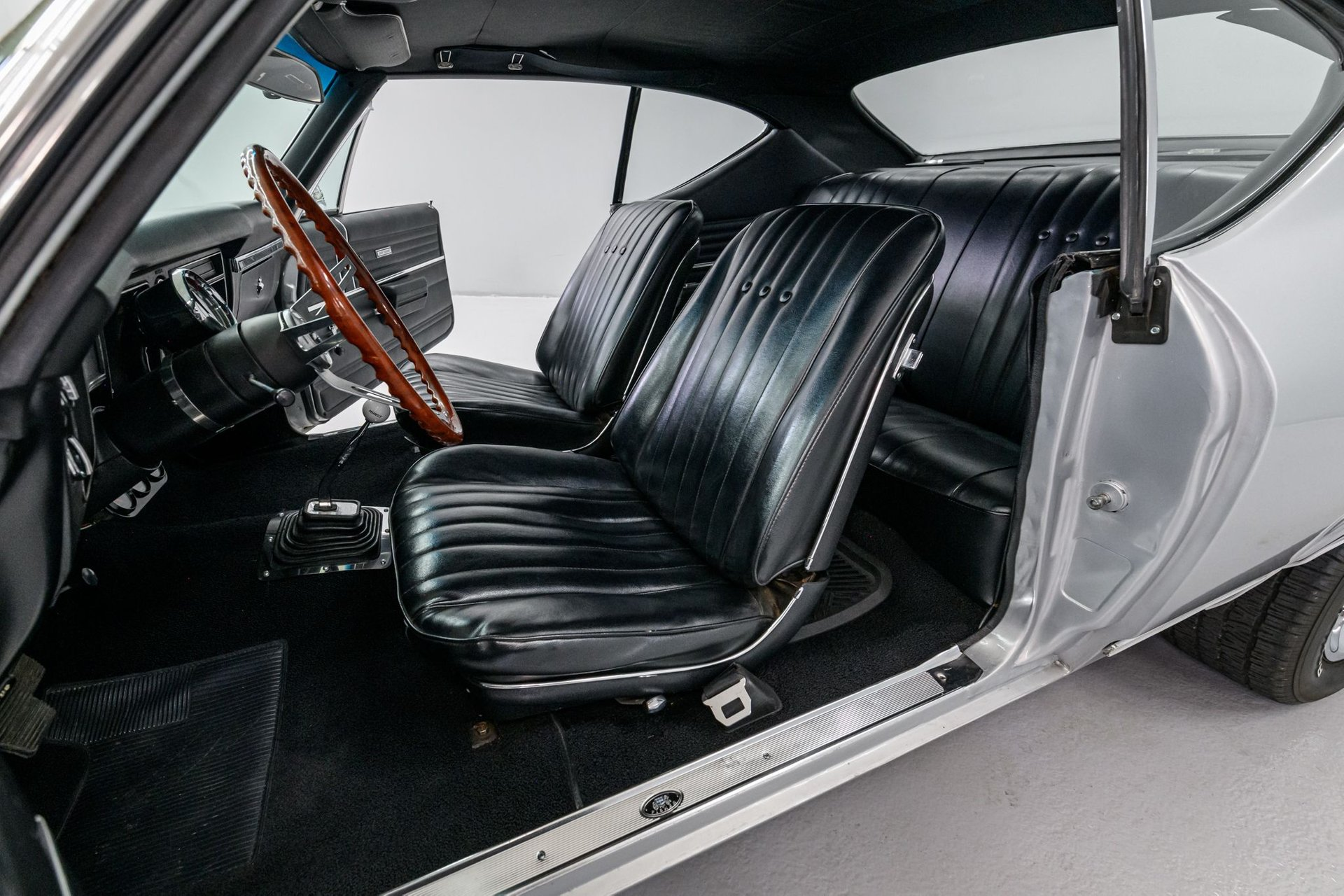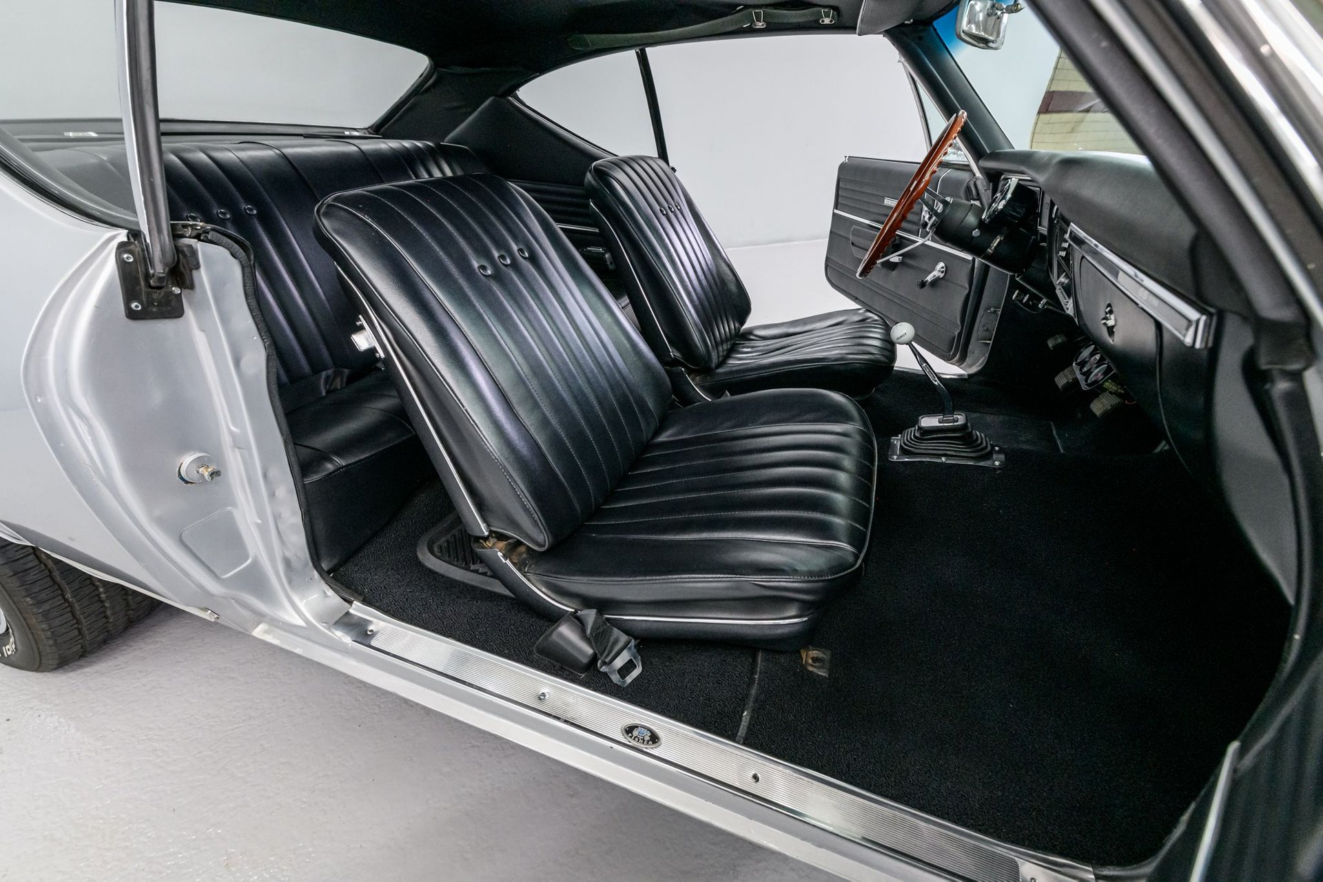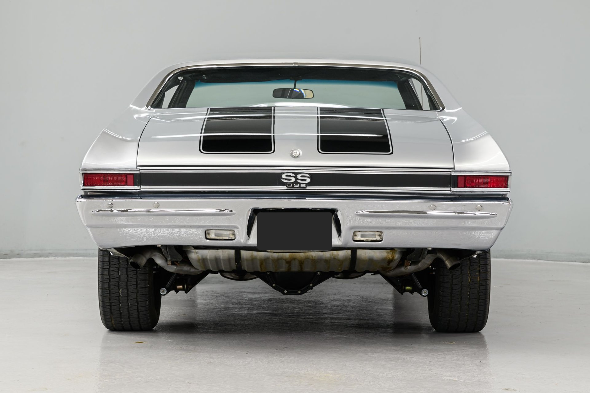 This 1968 Chevelle Malibu hardtop is very impressive. It was a 136…. code from the factory, but has benefited from an outstanding frame-off restoration (2012) that honors the legendary Chevelle SS396. The exterior received a professional two-stage Silver respray that is accented with the SS396 hood/stripes, SS396 grille/rear fascia/logos and excellent chrome/stainless. The stance is pure muscle car on 15”x8” SS rally wheels and new BFGoodrich Radial T/A tires. It's black vinyl interior has been carefully restored and features bucket seats, 3-spoke GM 'wood' wheel, JVC AM/FM/CD sound system, Hurst Comp+ shifter, tinted glass, an after-market gauge cluster and Sunpro Super tach.