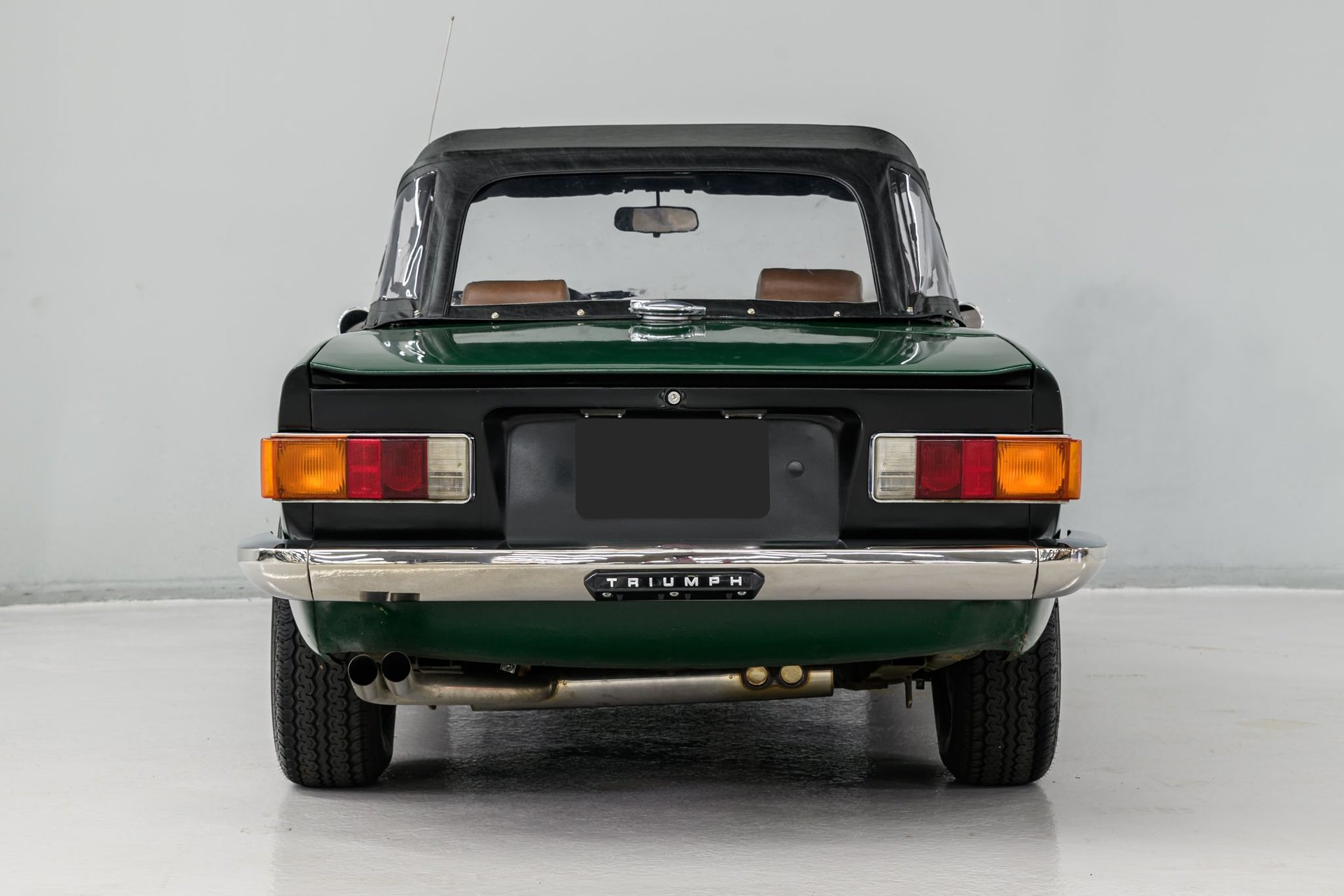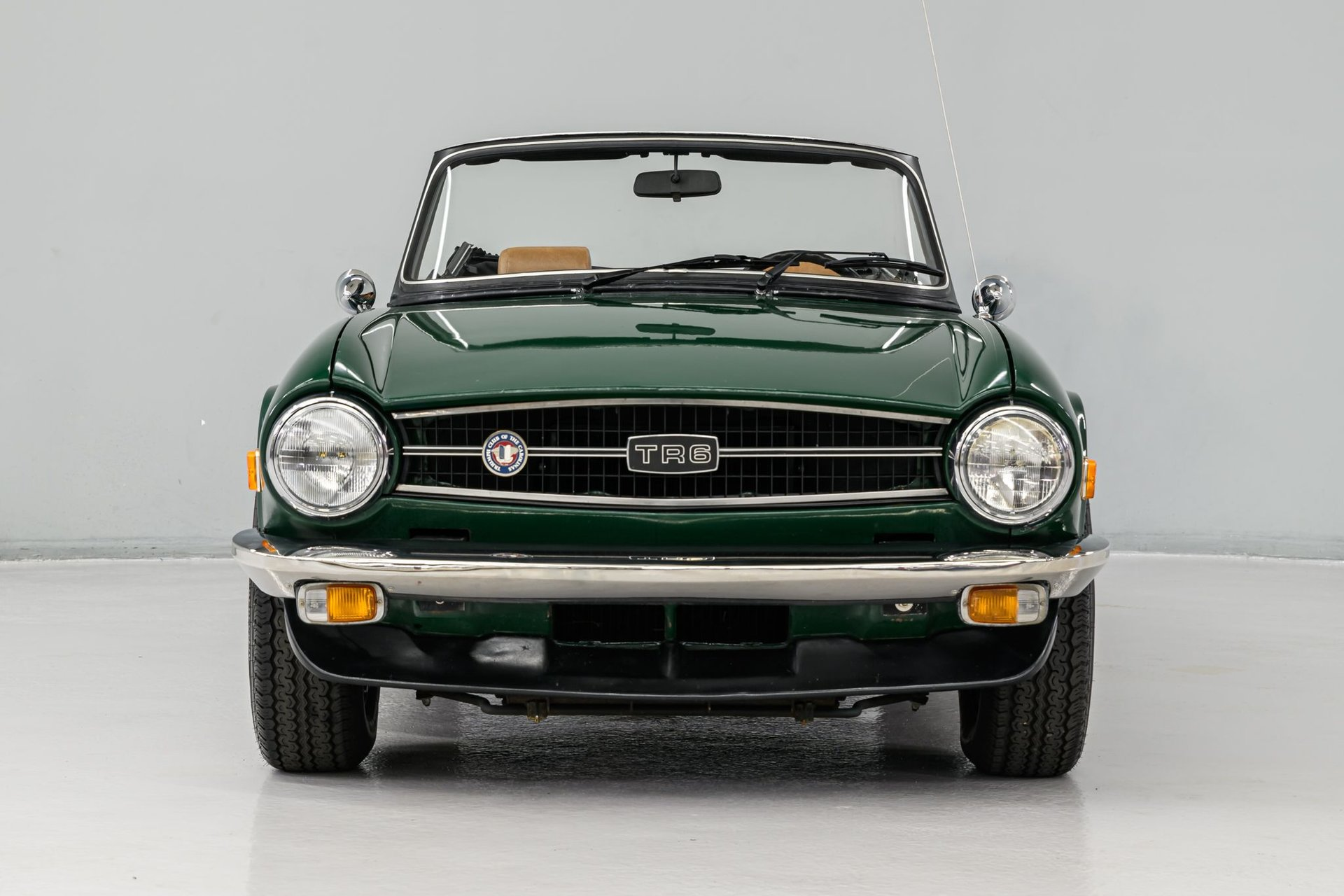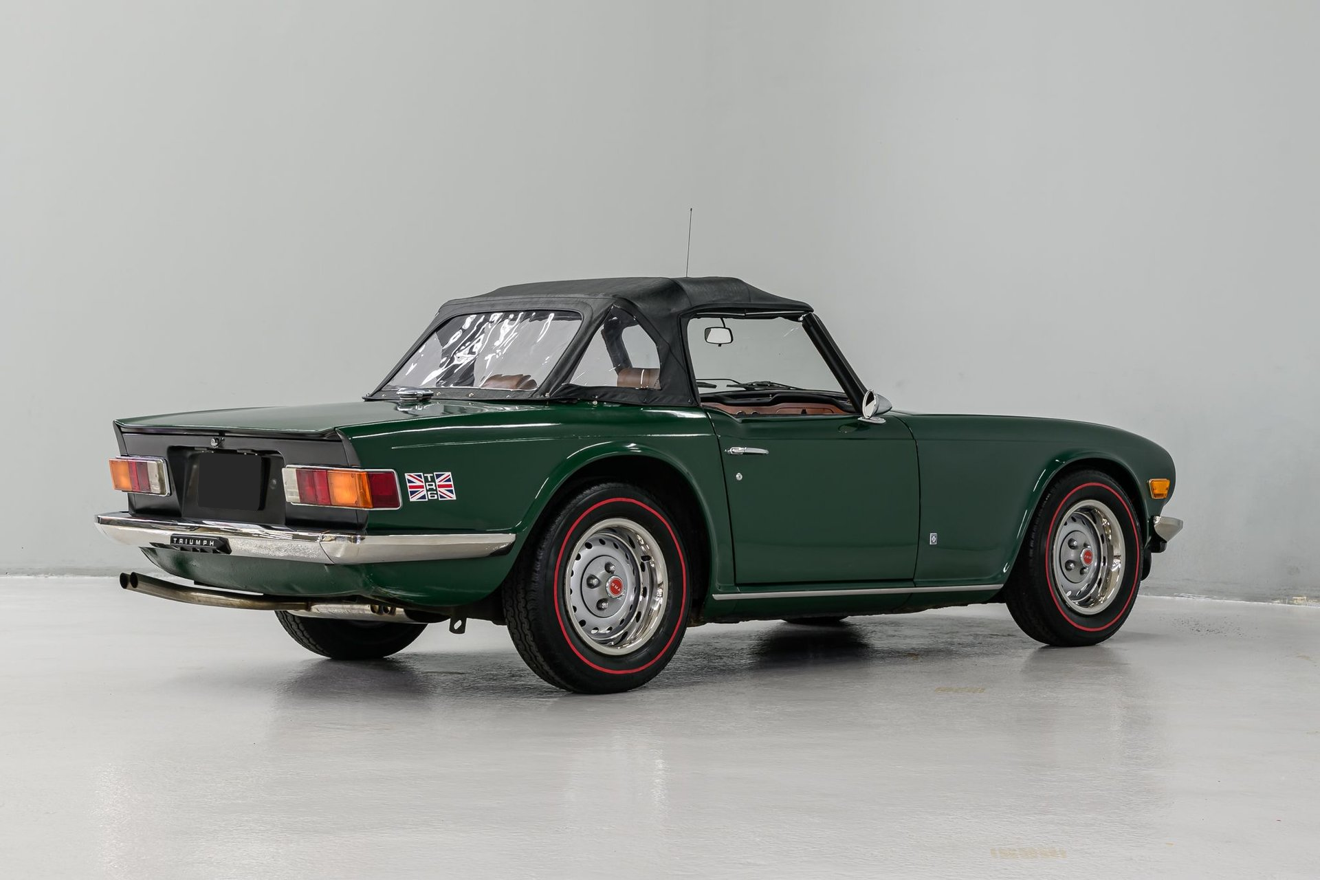 The Triumph TR6 was a very successful roadster - it is regarded by most to be the best TR series. During its 8-year model run (1968-1976) over 94,000 Triumph TR6s were built and exported around the world. This 1975 TR6 has had a full restoration and the Owner has provided a complete binder of documentation on the car. A 'Certified Copy of the Factory Record' from BMIHT, Great Britain is also furnished. The professional respray of British Racing Green is in fair condition and new stainless bumpers are a nice accent. The tan leather interior has been restored to near original condition and features include a new classic walnut veneer dash w/full instrumentation, new dash pad and vintage Blaupunkt AM/FM sound system. The newly installed convertible top is also excellent and a tan tonneau is provided.