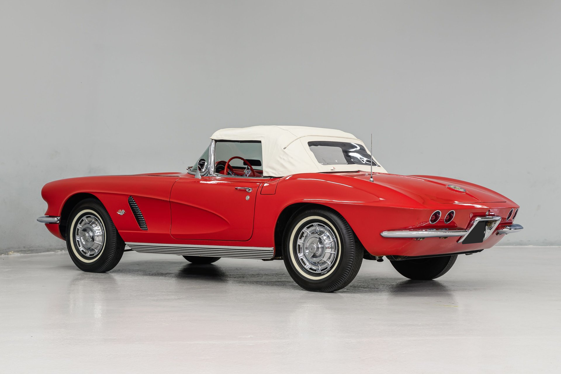 By 1962, the Chevrolet Corvette had reached a performance standard that other American cars could not match. To quote Road and Track Magazine at the time – 'The 1962 Corvette is a pretty package, with all of the speed you need and then some.' This carefully restored '62 roadster is stunning - look at the photos. There is a folder of notes that document the restoration and a copy of the original window sticker. The Corvette's exterior was reshot in factory code 923 Roman Red and Firestone bias-ply whitewall tires are mounted on steel wheels with handsome factory spinner hubcaps. The Corvette is equipped with a manual soft top and fiberglass hardtop w/stand. The interior is impressive. Upholstery and carpeting are outstanding and classic interior components include the Wonderbar radio, factory T-10 shifter, dashboard mirror and passenger grab bar. Based on the reproduction window sticker, horsepower was originally supplied by a 327ci small-block that output 340hp. It was equipped with a single 4-barrel carburetor and solid flat tappet camshaft. The engine has the correct intake/exhaust manifolds for a '62 327/340 with a Carter AFB carburetor. The distributor and chrome accessories appear to be correct. The small-block sounds strong through a custom aluminized exhaust and is backed by a 4-speed manual transmission. A very solid chassis is equipped with manual steering and 11” manual drum brakes. All suspension components are in good condition and the rear axle is fitted with air-shocks. Very few of these C1 Corvettes reach the marketplace and even though this beautiful '62 Corvette is not a complete numbers matching car, it is an amazing restoration that belongs in your collection.