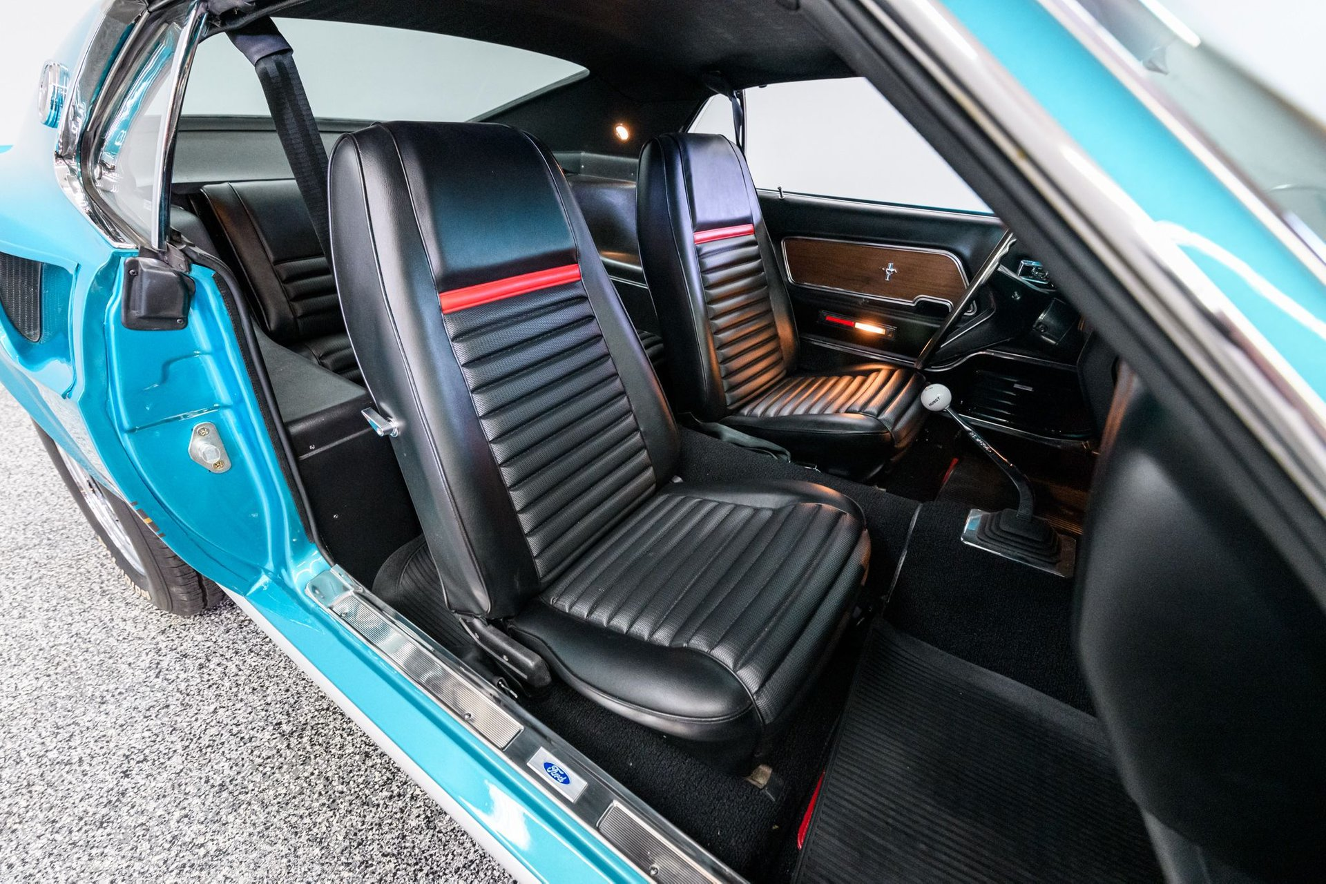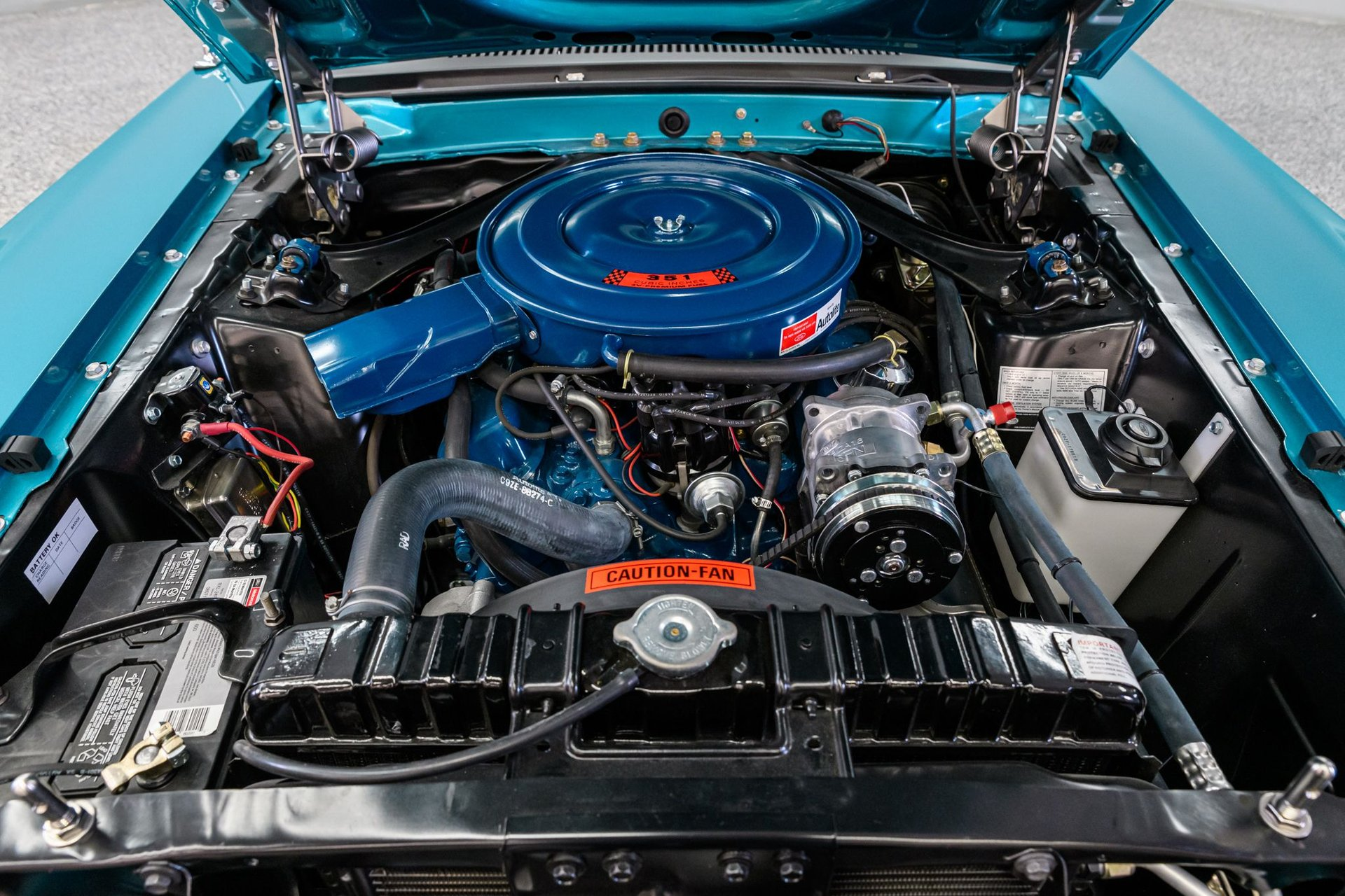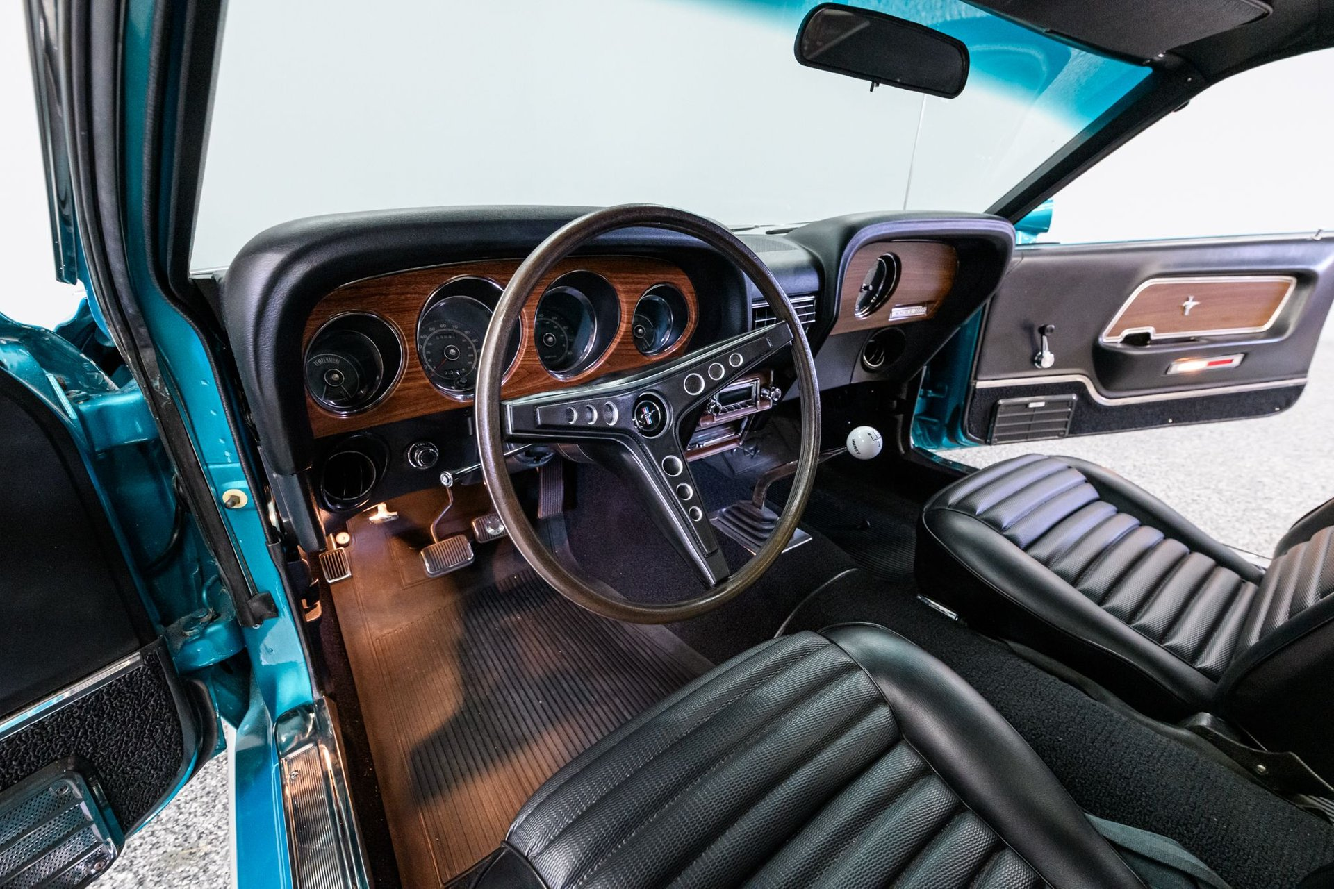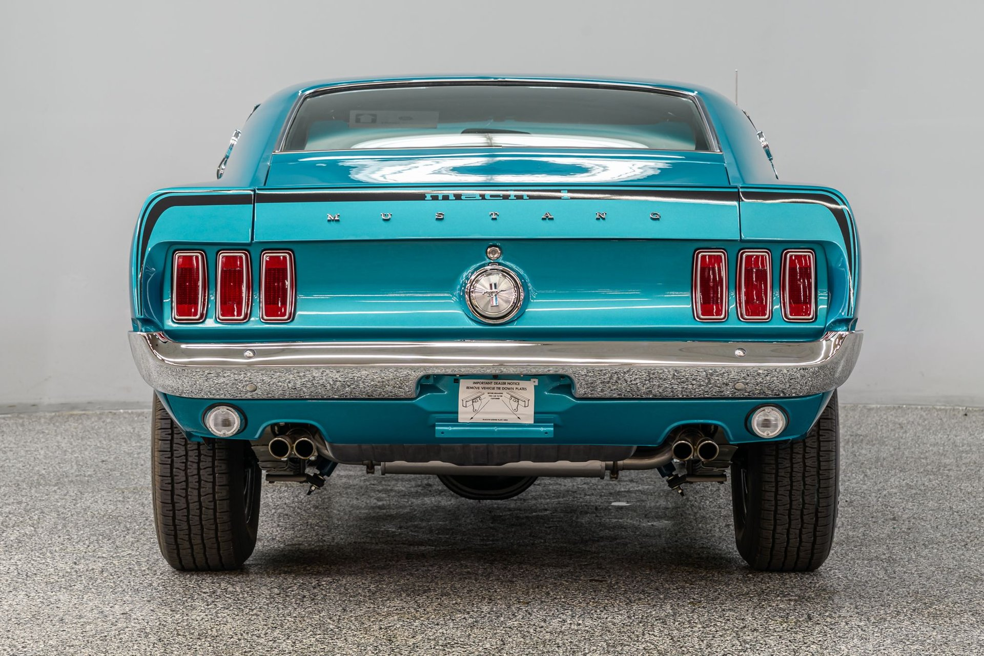 Automotive craftsmen hope to conceive a classic with every new clay model. In 1969, the designers of the Mustang Mach I created one of those enduring designs, a design that years later many say was the foundation for the 5th/6th generations of the Mustang. The original 1969 Mach I model utilized Mustang's new 'Sportsroof' body and added numerous visual and performance enhancing items such as a black hood treatment with hood scoop/pins, HD suspension, chrome pop-open gas cap, spoilers and chrome exhaust tips. This stunning '69 Mach I retains all of these features plus a superb restoration to better-than-original. The two-stage Gulfstream Aqua finish (F5 code - original color) re-spray is virtually perfect and Mach I side strips and blacked out hood treatment add stunning accents. A fully restored interior features black knit vinyl Hi-Back bucket seats w/red trim, new Sanden A/C, tinted windows, full gauge cluster and premium RetroSound Hermosa AM/FM/Bluetooth 4-channel sound system. The 351/4V Windsor, said to be matching numbers, has been carefully rebuilt to stock specs and is backed by a 4-speed manual gearbox w/Hurst Comp+ shifter. A 9” Ford Traction-Lok differential is fitted with 3.25:1 gears. The suspension is tight and handling is managed by power steering, power disc/drum brakes w/dual master and 'Magnum 500' 15” polished wheels with BFGoodrich Radial T/A treads. This classic Mach I is a piece of Blue Oval history from a time when muscle cars ruled the streets. It is nicer than new and an investment that will not disappoint.