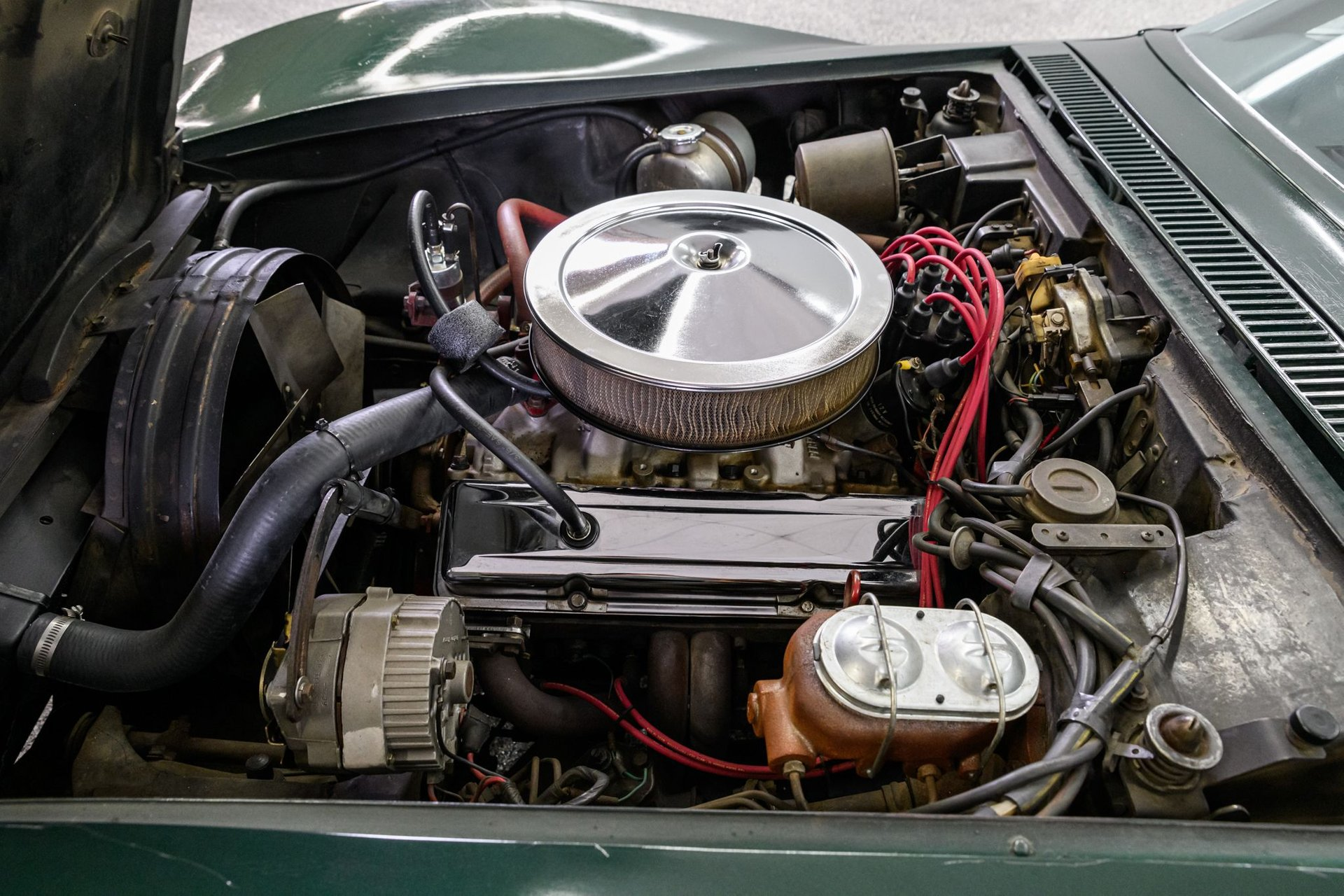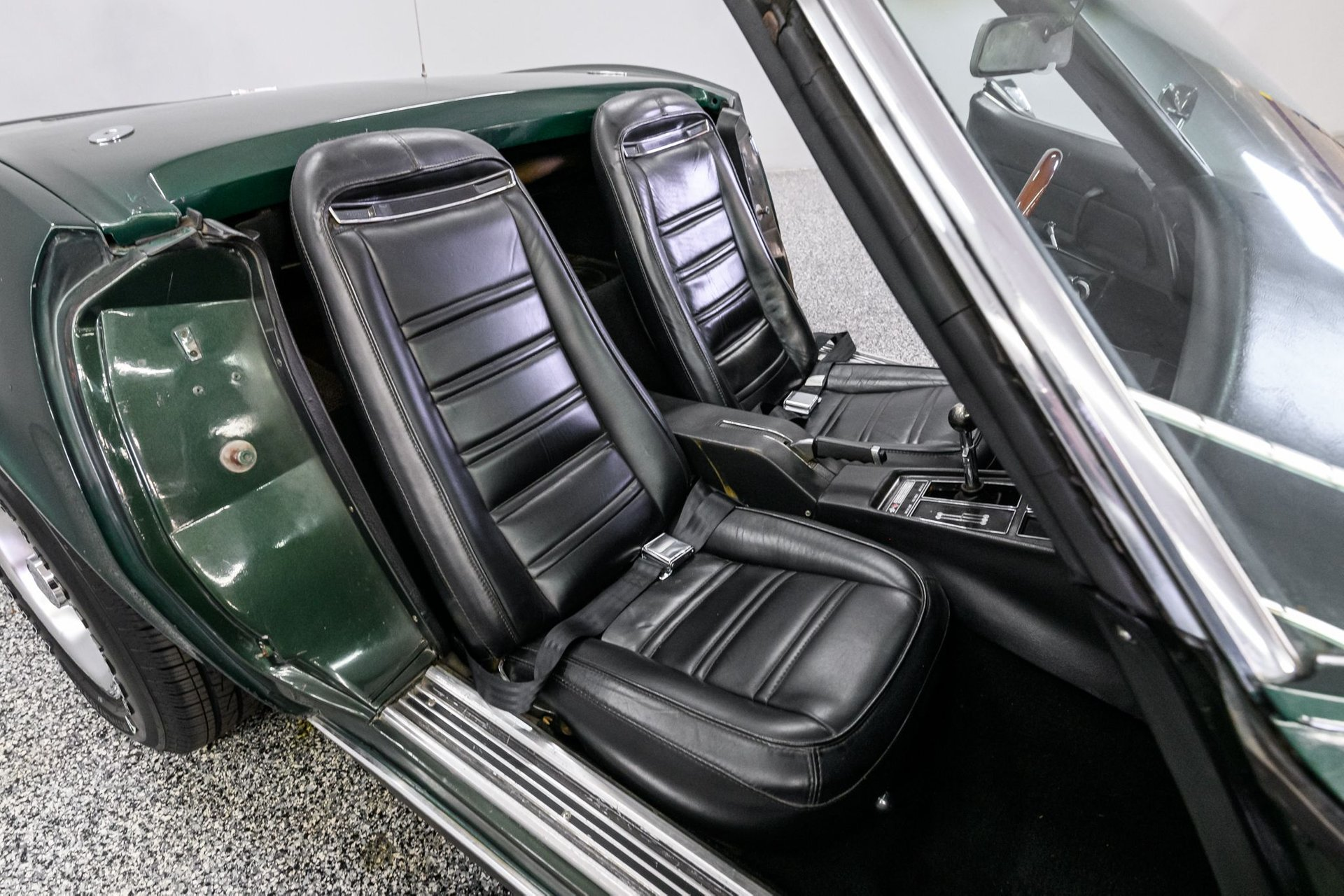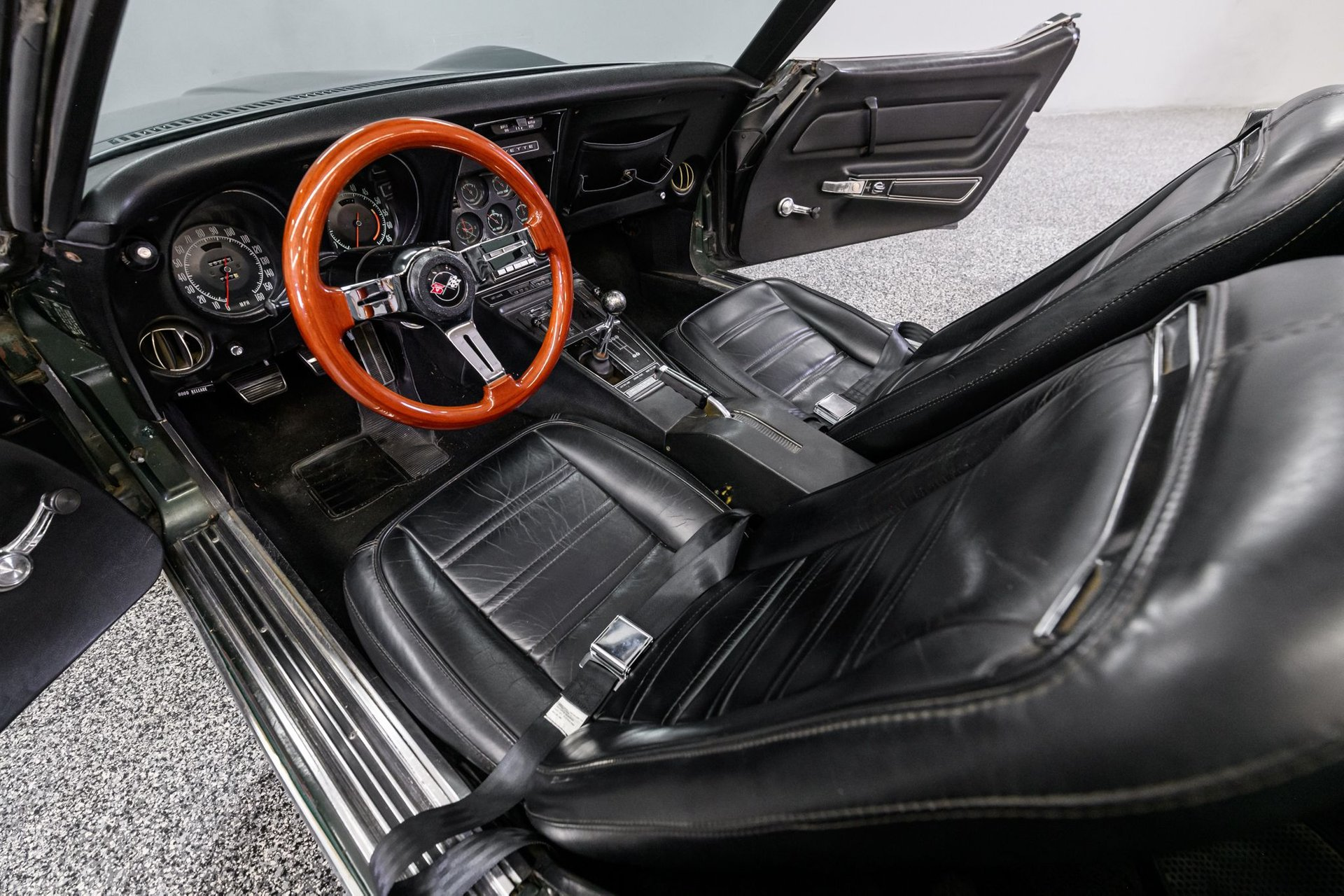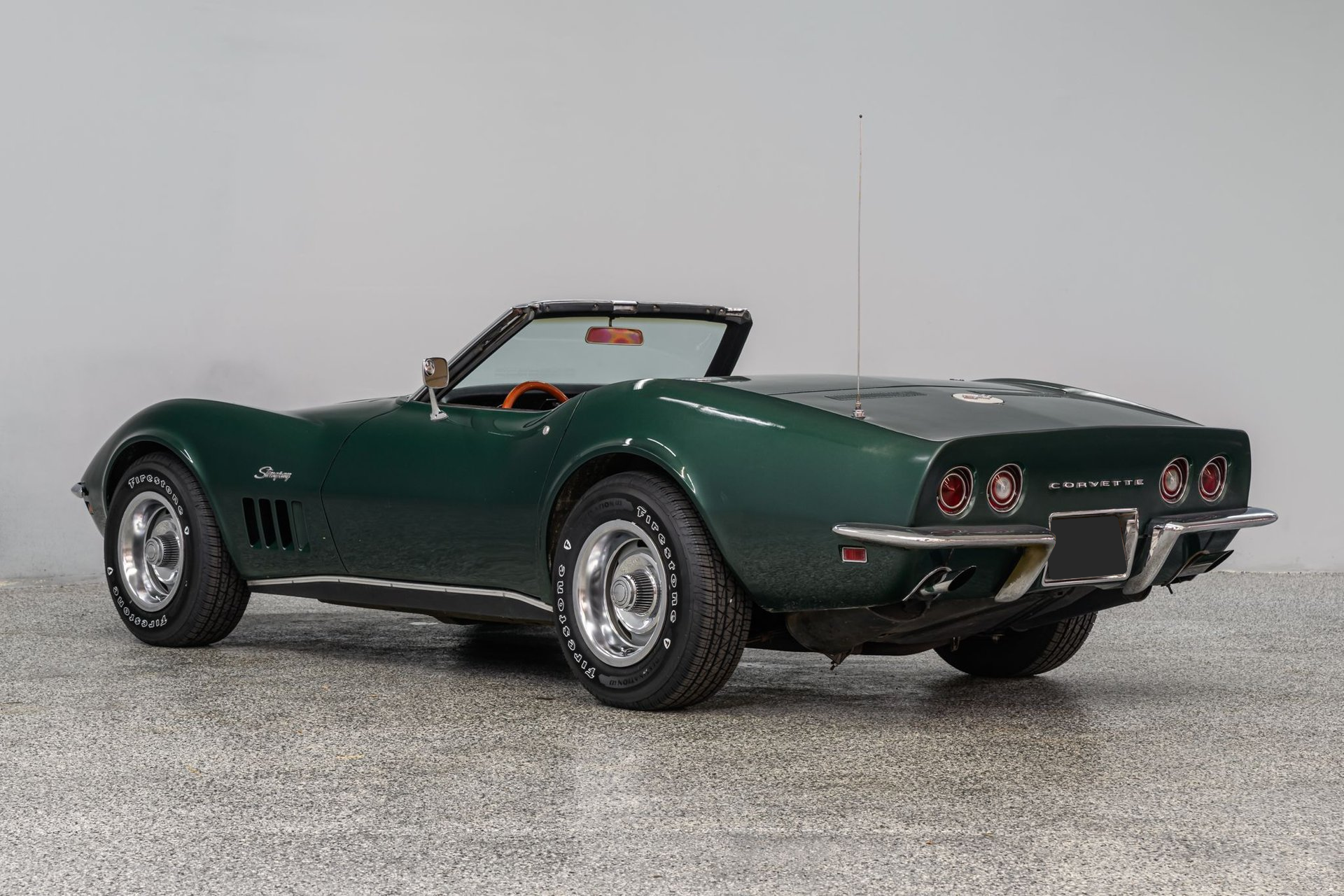 This 3-owner 1969 Corvette 'Stingray' roadster is said to be matching numbers through out. Except for a repaint 30+ years ago and some engine/suspension upgrades, it is original. It is not a show car, but a very solid driver. The owner believes that the roadster has never been in a fight - all of the gaps are true and all of the body components appear to be original. The frame and birdcage are excellent. The current owner, a senior, has had this car for over 25 years (garaged). The single-stage Fathom Green repaint (1988) is starting to show dulling on hood and trunk. The black leather interior is in good condition - dash and door cards are very good, all gauges (excp. clock) work including the mechanical tach and the factory AM/FM radio still plays. Headlight/wiper vacuum features work fine using the manual pulls. The canvas top is 'original 1969' and needs replaced, as do the rubber seals. The folding top frame is fine and rust-free. Under the hood, the owner states is the factory 350 /300hp that has been massaged, but runs fine on unleaded 93 octane. It was professionally built some 20,000 miles ago - bored .030 over, 10:1 pistons, 3-angle valve grind w/hardened valve seats, Schneider hydraulic flat tappet cam (350/350hp specs), Edelbrock Performer dual plane intake, 600CFM Holley and Hedman tube headers. (Included in the sale are original engine components including the intake manifold, Rochester QuadraJet carb and rams-horn exhaust manifolds.) The distributor is the factory points/condenser unit w/gear-drive tach. This is a nice, old-school small-block that is right. The motor is backed by the factory 4-speed wide-ratio trans w/Muncie shifter and stock 3.23:1 posi-traction differential. Clutch is very smooth and all u-joints have been replaced. The transmission and differential have been serviced, but have not required any repairs other than a trans rear seal a few years back. The Corvette has power steering and manual disc brakes. All brake calipers are stainless sleeved with new hoses/master cylinder and the suspension/sway bars have polyurethane bushings. Independent rear suspension has been upgraded with a new transverse steel leaf spring, new sway bar and camber-adjustable tie rods. New 225x70x15 Firestone Destination LE3 radials (very similar in appearance to the original F70x15 Firestone Wide-Ovals) are mounted on factory 15”x 8” GM Rally wheels with GM centers and after-market trim rings. You can buy a much newer 'Vette for the same money. It will however be worth less next year unlike this '69 4-speed Stingray roadster. If you are looking for a trailer queen, look elsewhere. If you want a classic C3 roadster that runs, come take a look - you will not be disappointed.